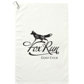 This heavyweight 3.5lb/dozen golf towel is 100% cotton and comes with a grommet and aluminum carabiner clip for attaching to your golf bag. Free embroidery run charges on up to 10,000 stitches.
