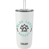 The CamelBak® Straw Tumbler 20oz is the perfect cup to house your favorite summer beverages, whether out on a cross-country road trip or a full day on the water. You can always count on the Horizon Straw Tumbler to keep your beverages frosty cold, plus the straw lid adds splash-free convenience and helps prevent the use of wasteful single-use straws. Like all of our drinkware, you can count on the durable construction to last for season after season. It features spill-resistant Tritan straw lid, as well as the non-slip silicone base. The Tritan straw is shatter, taste, and odor resistant. It is constructed with double-wall 18/8 stainless steel material and sweat-proof vacuum insulation in between. This 20oz straw tumbler comes with the durable powder coating and it is BPA-free. Not recommended for very hot liquids due to straw design. Leed’s Exclusive.