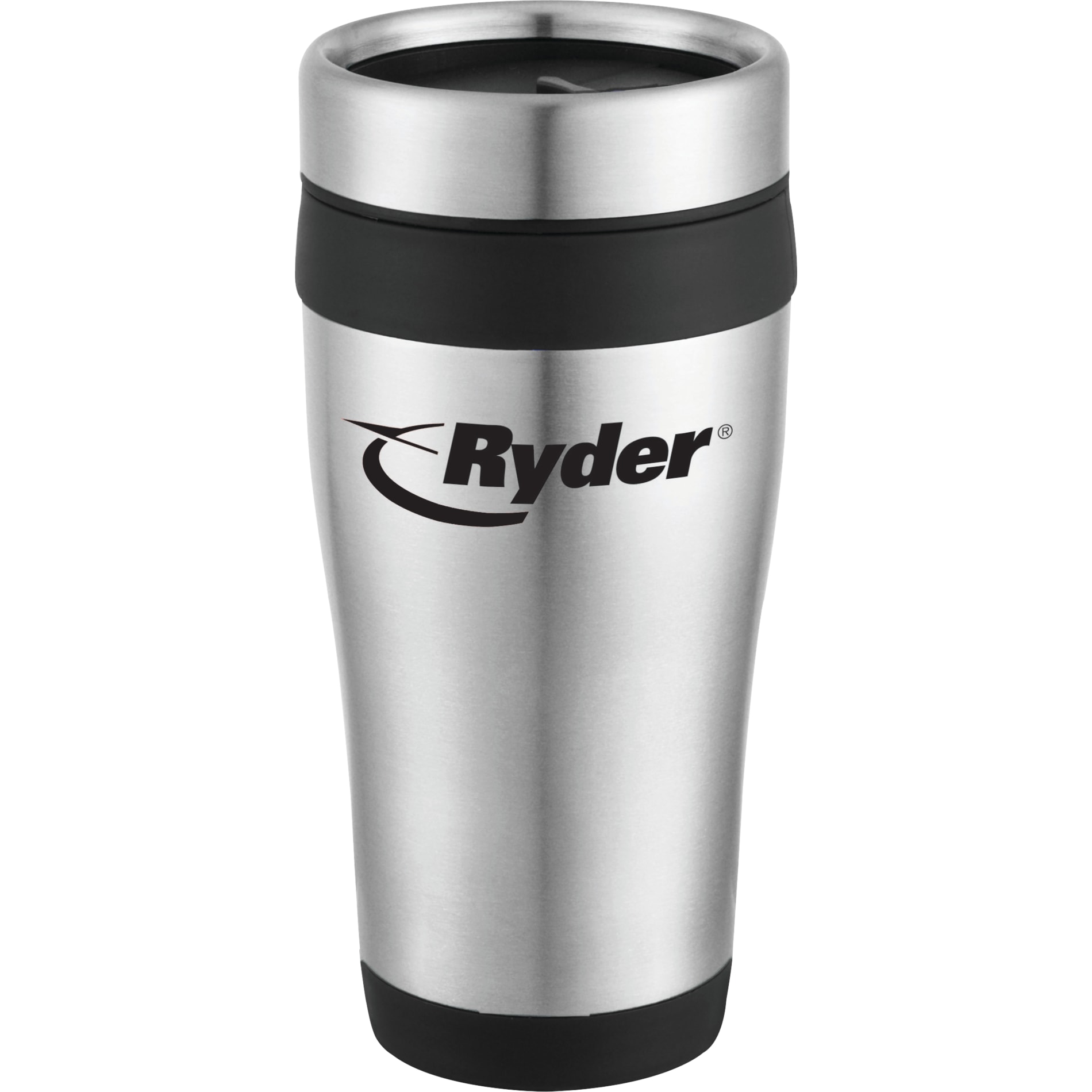 The Carmel 16oz Travel Tumbler features double-wall construction and stainless steel twist-on lid with a slide-lock drink opening. Hand wash only and follow any included care guidelines.