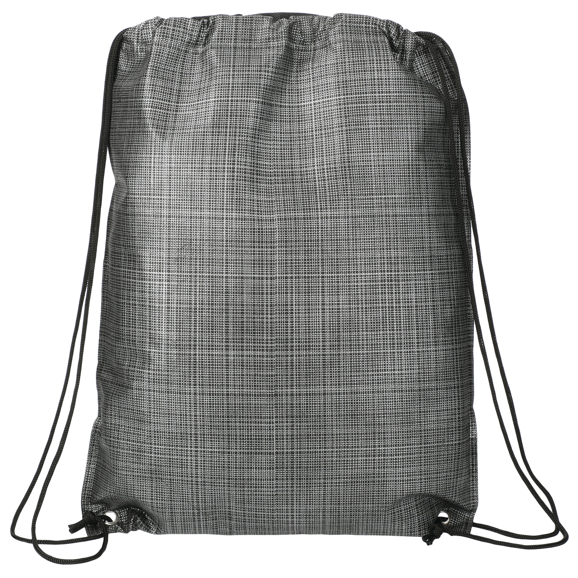 The Heat Sealed Drawstring Bag features a cinch opening and a fun metallic crossweave pattern.