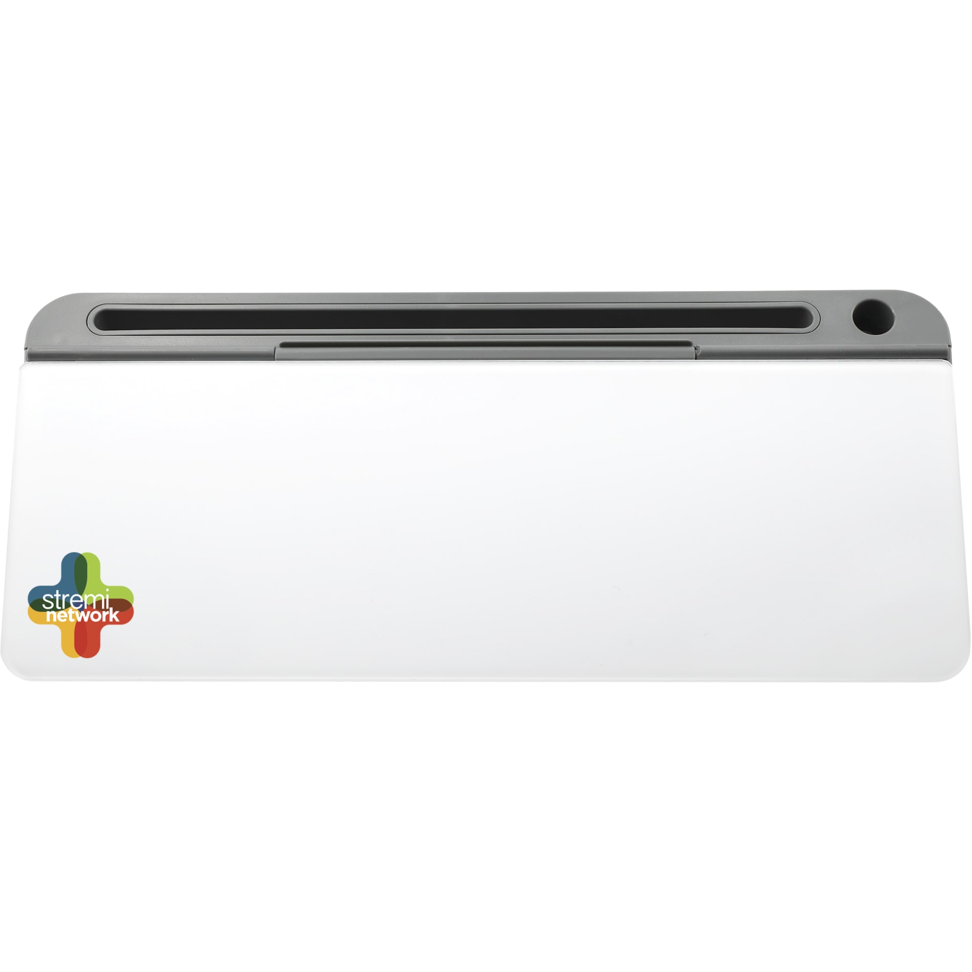 The Desktop White Board makes a great addition to any office! The shape of the white board allows it be positioned in front of your computer. Instead of wasting sticky notes you can write down your daily to do list on the desktop white board. Underneath the white board is storage for your office accessories. A white board eraser is included. Please note the whiteboard doesn’t include a white board marker. A premium 1 pc giftbox is included as the standard packaging option.