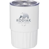 An elegant glass-like prism effect inside the tumbler, enhanced by the see-through lid with same prismatic design evokes the facets of a flawless diamond. This unique tumbler allows you to enjoy all types of beverages, from liquor to coffee, or even an ice cream sundae! Double-wall vacuum insulation with copper plating ensures that your favorite craft drink, latte or mocktail stays ice cold until the very last sip. The construction also prevents condensation on the outside of the tumbler. On-trend coating. Wide opening for easy filling, cleaning and adding ice. Fits most standard car cup holders. Hand wash only. 16oz.