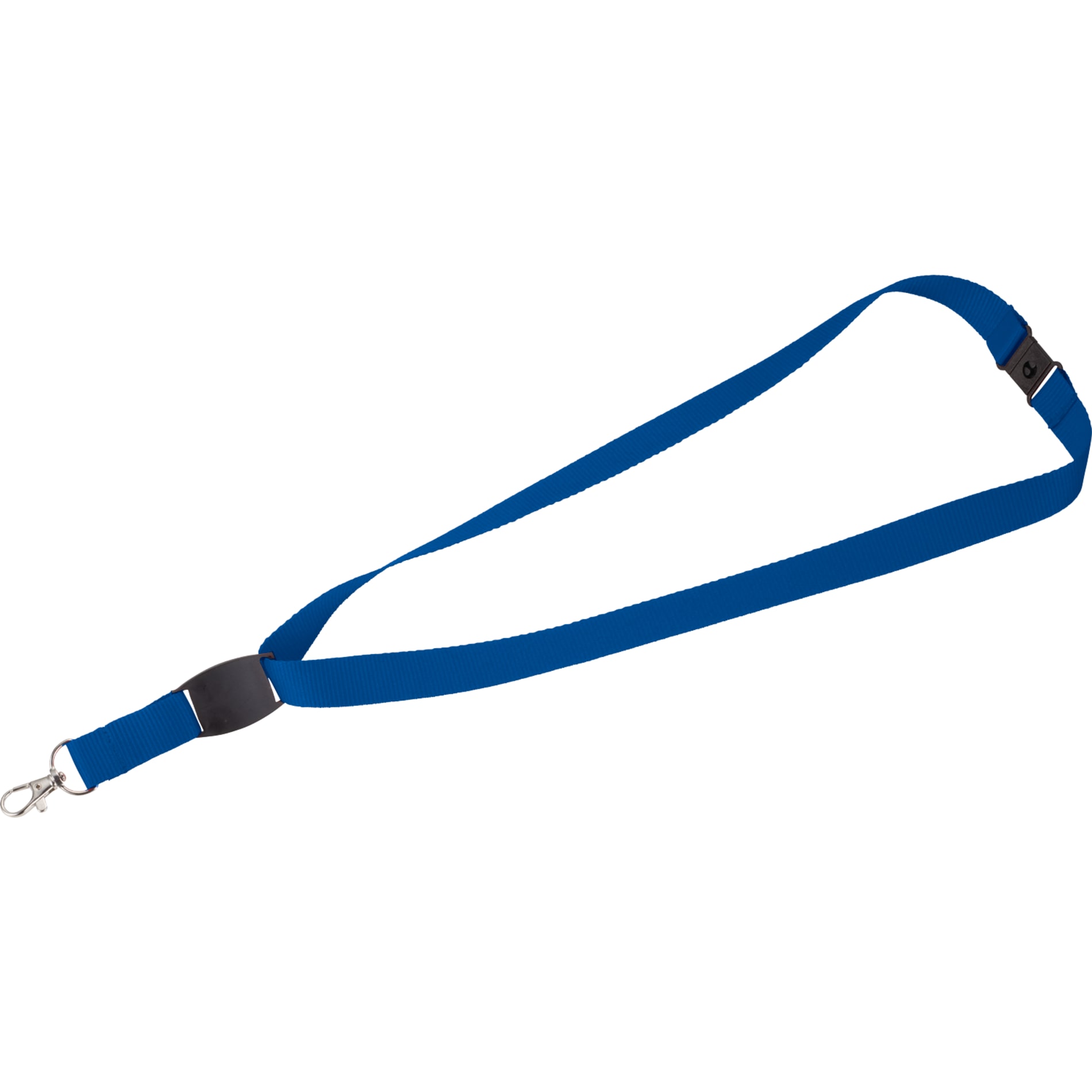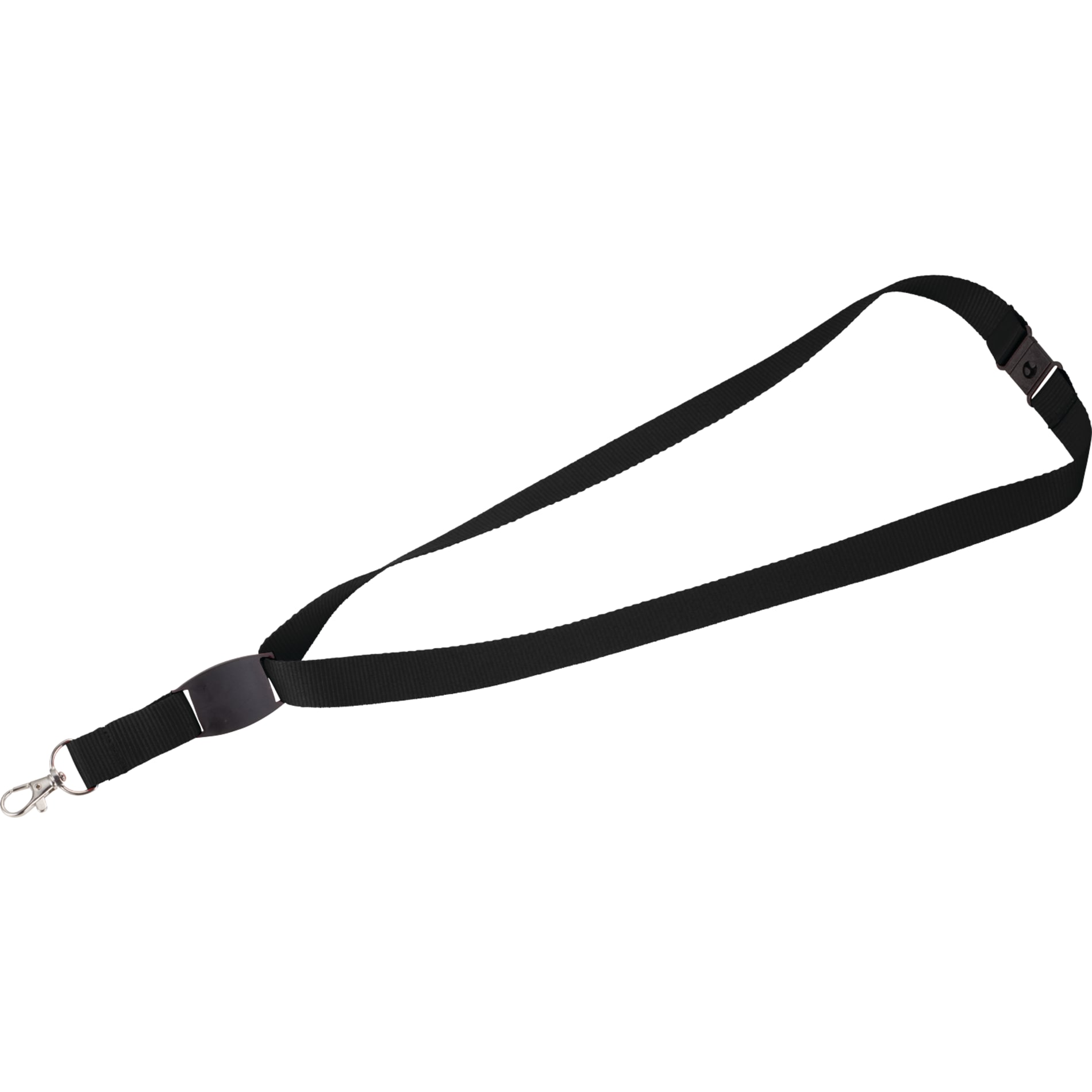 The Flat Panel Lanyard is a 13/16-inch wide lanyard that includes a breakaway neck clip and a swivel lobster clip. It features a flat panel for additional decoration.