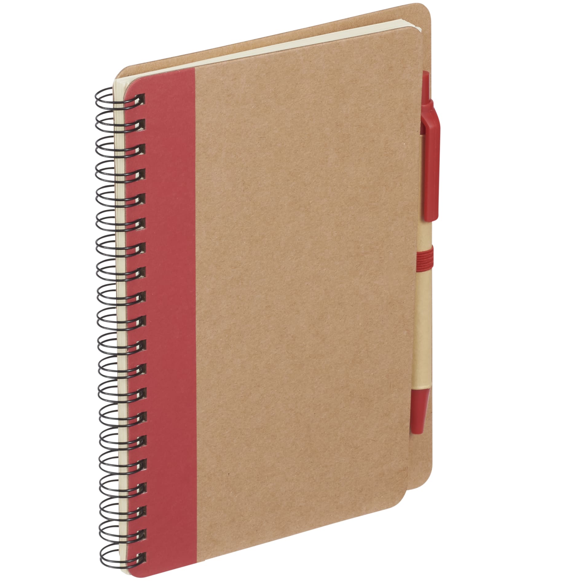 The 5'' x 7'' FSC® Mix Eco Spiral Notebook with Pen features 60 ruled sheets of FSC® Mix cream paper, has a matching color elastic pen loop, and comes with a matching color ballpoint pen. Please note that pens are packed separately from notebooks. Through a partnership with 1% For The Planet, one percent of sales of all EcoSmart® products are donated to environmental nonprofits. Due to the nature of the material, there may be color variances.