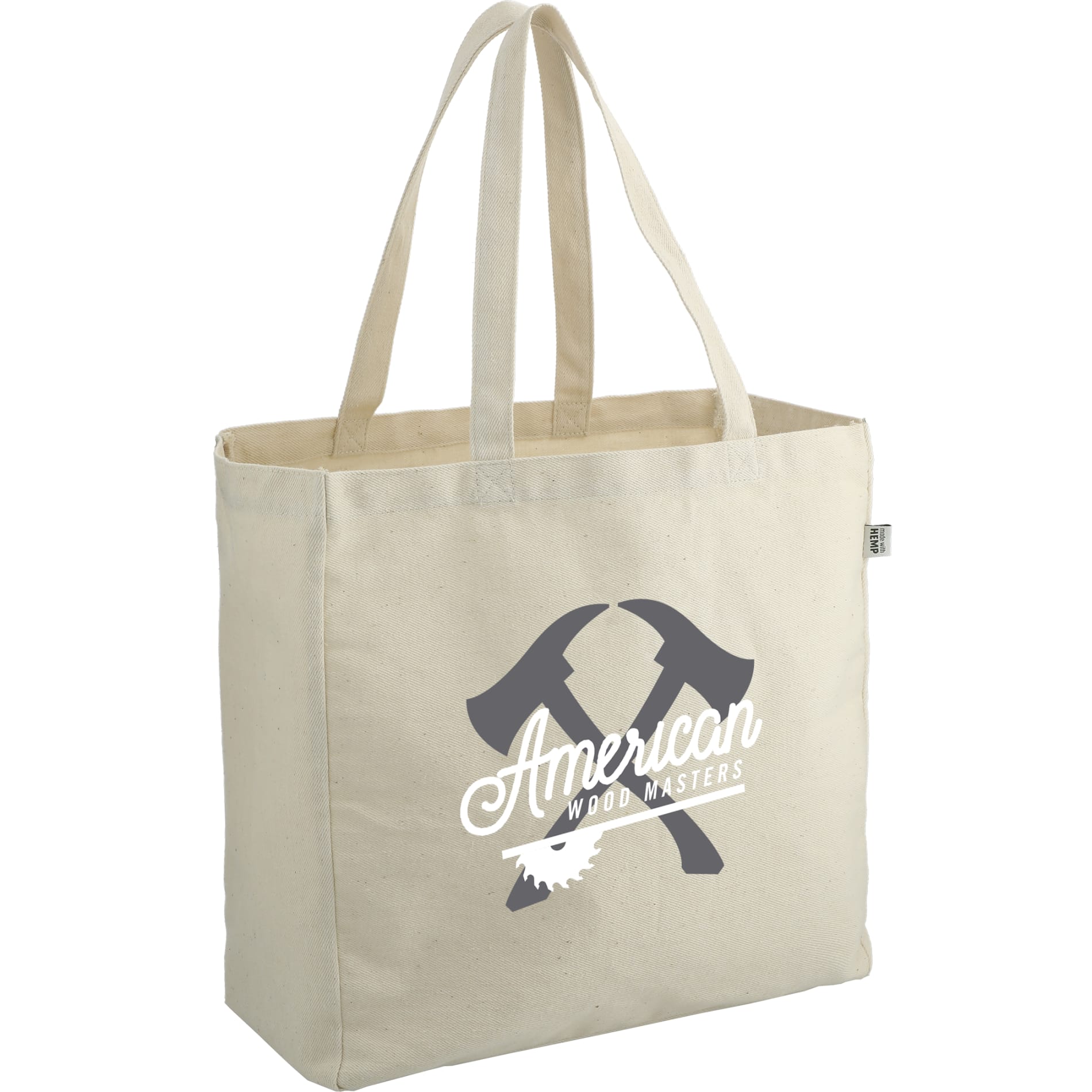 Made from 11oz hemp cotton blend, this carry-all tote makes the perfect errands bag. This tote features double drop handles and a roomy open compartment.