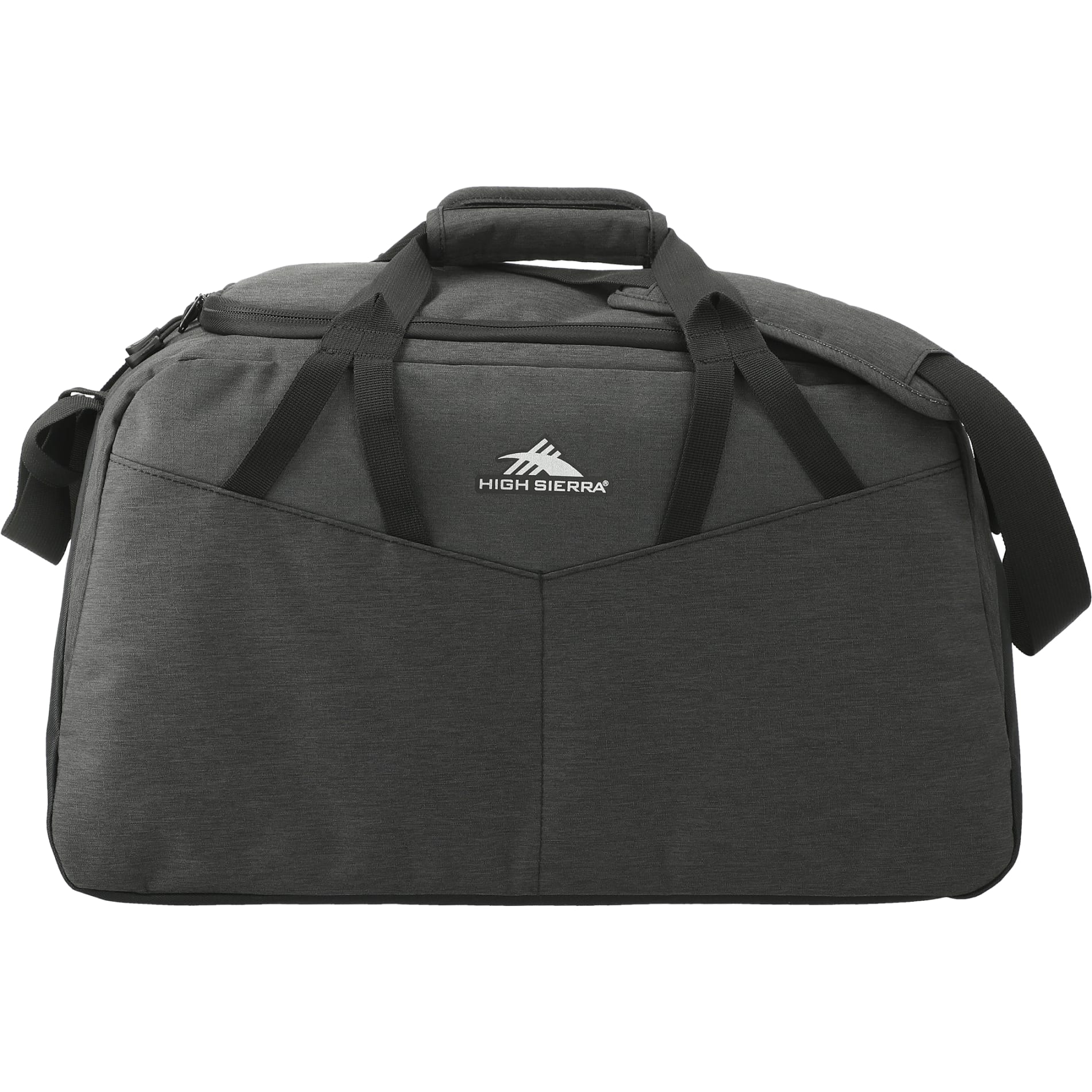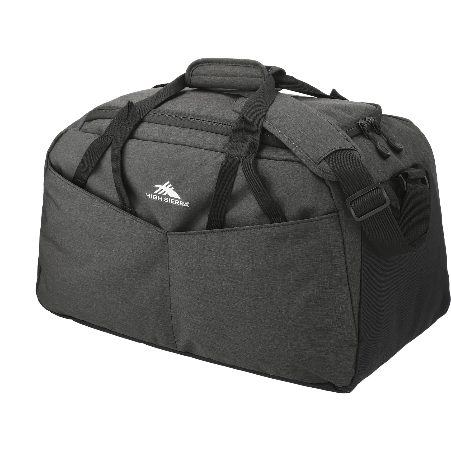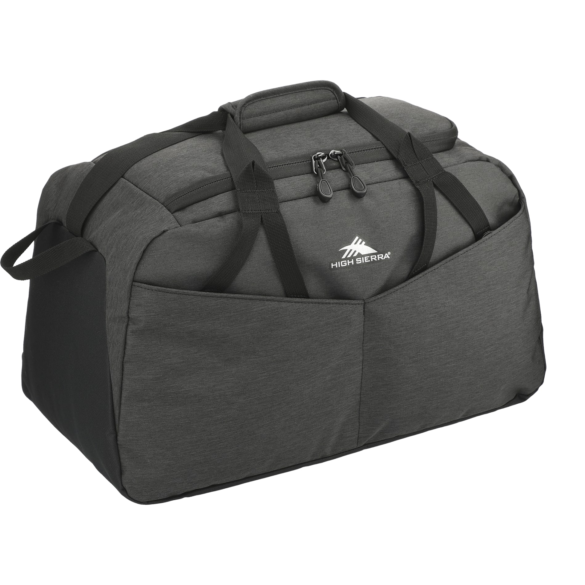The High Sierra Forester RPET 22" Duffel is designed for all casual travel needs. This duffel features a roomy single compartment design with large U-shaped opening for easy access. The front stash pocket and exterior pockets with organization add extra storage for your must-have items. This duffel is made from water resistant fabric and features a wipe clean interior. Carry using the top grab handles or the adjustable, padded shoulder strap.