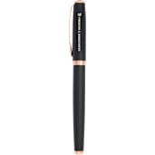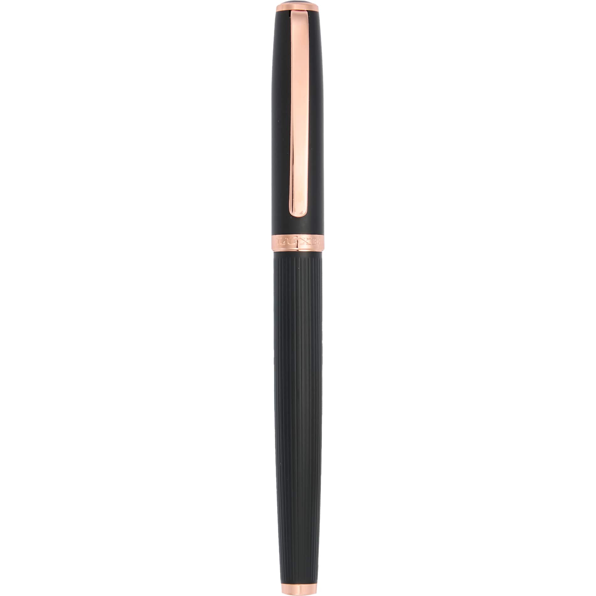 The Luxe Recycled Brass Matte Roller Ball Pen combines sustainability with refined design, featuring a 60% recycled brass barrel with a matte black finish and rose gold accents. The LUXE logo on the middle ring adds a sophisticated touch. Its precise 0.5mm tip delivers smooth black gel ink, while the cap-off design enhances its classic elegance. By selecting this pen, you’re supporting environmental nonprofits through 1% For The Planet.