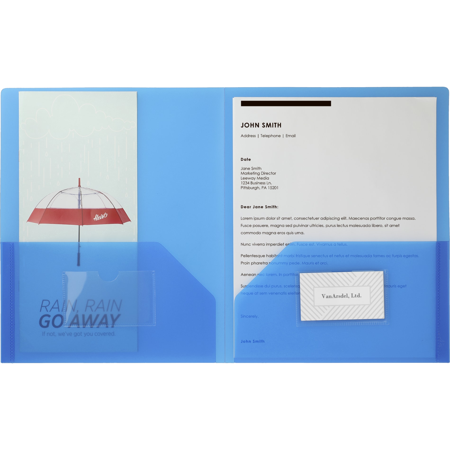 The Old School Folder features two interior document pockets with die-cut business card holders.