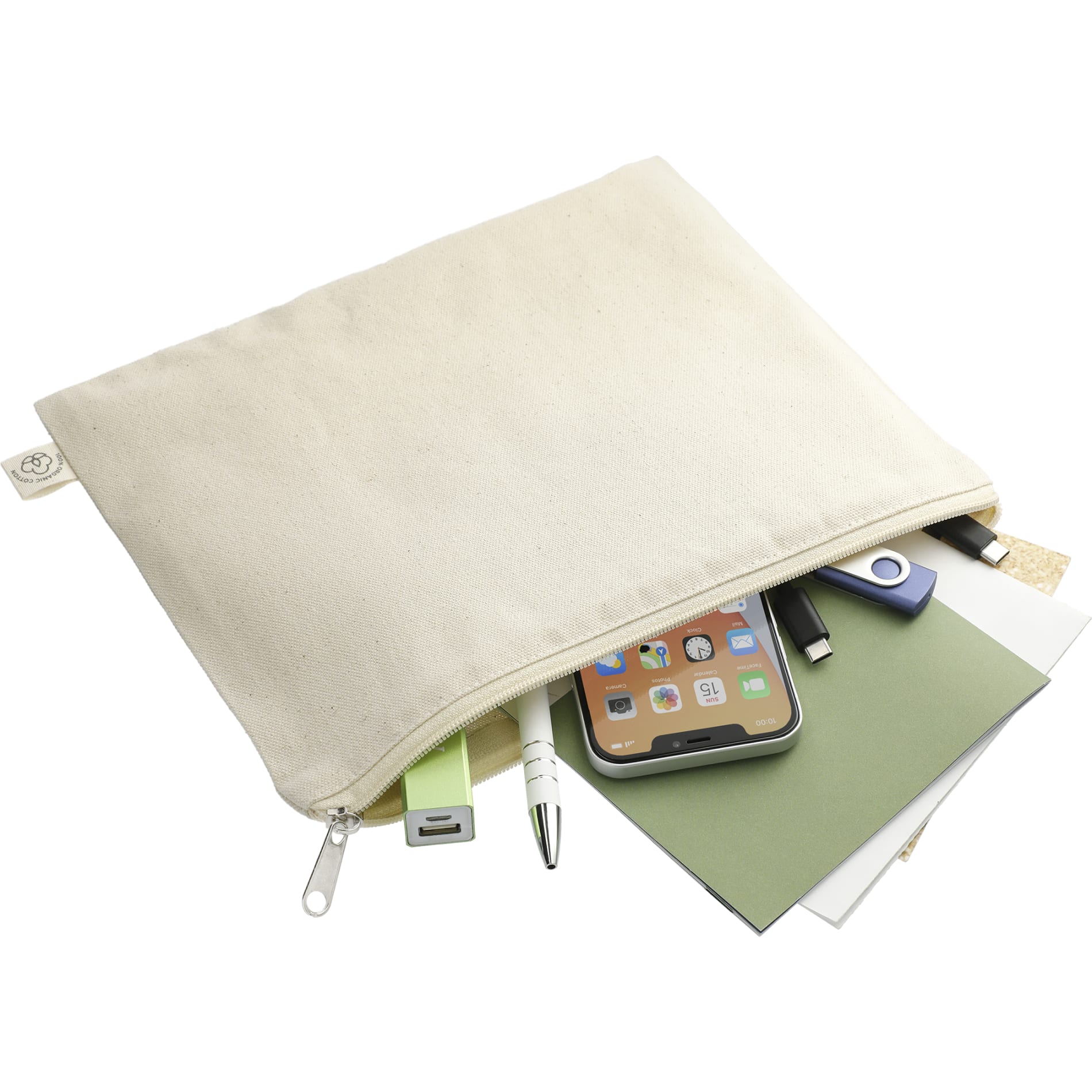 The Organic Cotton Flat Travel Pouch features a zippered compartment to store all your small accessories. Through a partnership with 1% For The Planet, one percent of sales of all EcoSmart® products are donated to environmental nonprofits.
