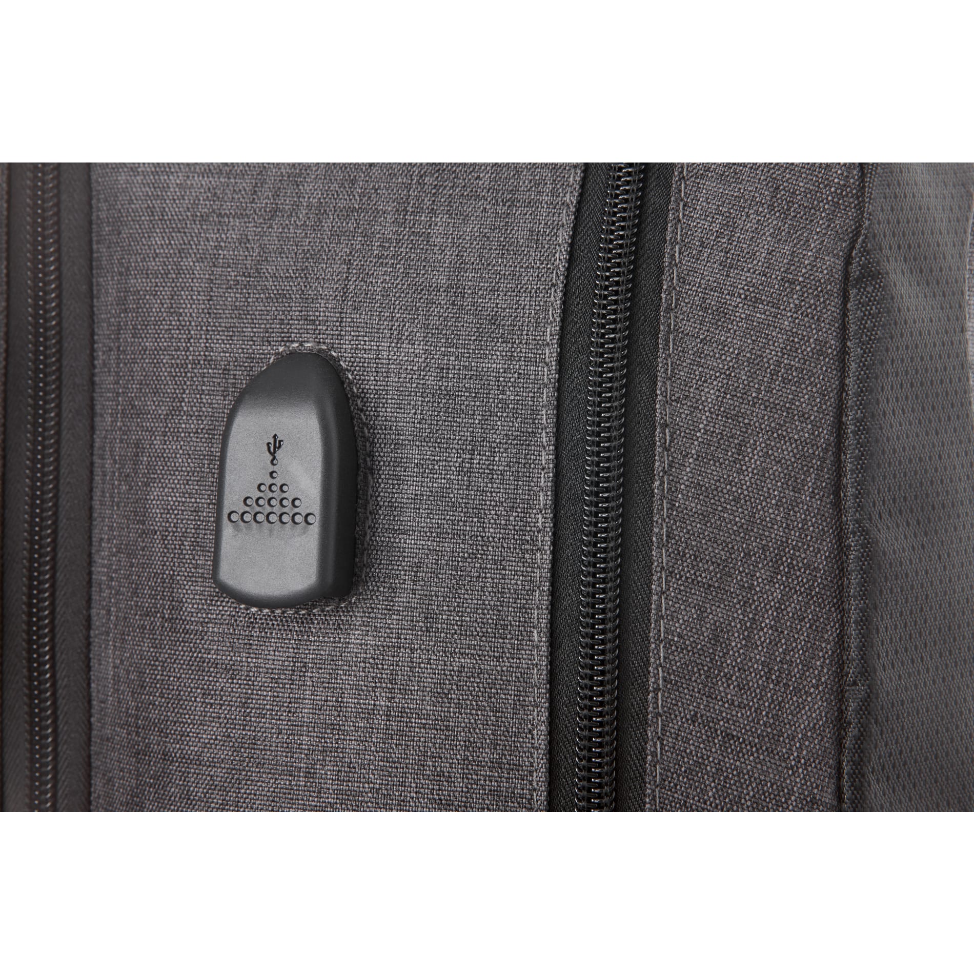 The Overland 17" TSA Computer Backpack w/ USB Port makes traveling easier with a TSA computer compartment that holds up to a 17 inch laptop and lays flat to go through security. A USB port and cable, which are included, allow you to charge your devices inside your bag with a power bank for seamless charging. Top and front grab handle, side zippered pockets. Beautiful graphite color ways with padded back and shoulder straps. Disclaimer: There may be minor variations in color of the actual product due to the nature of the fabric dyes, weaves and printing.