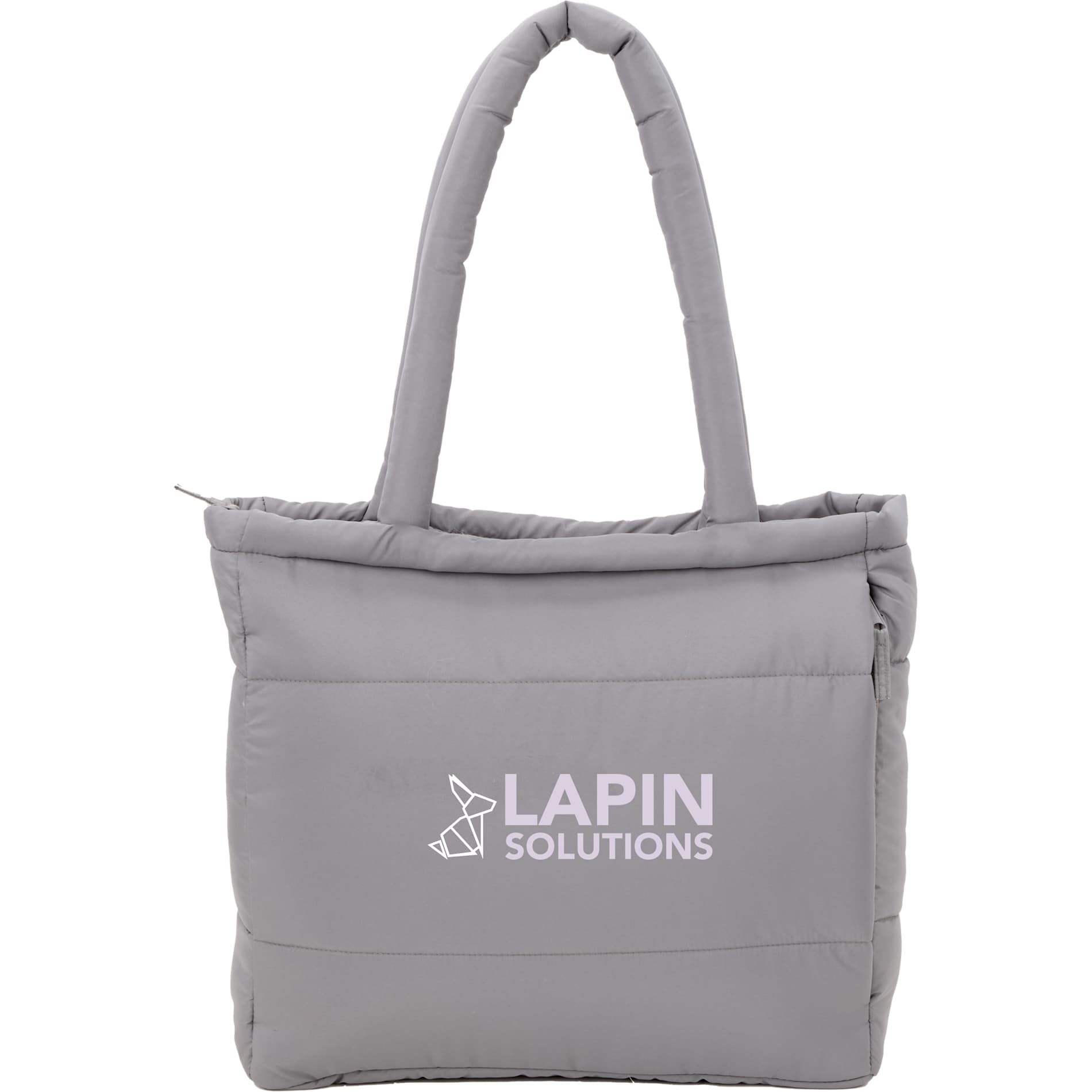 The Puffer Tote offers a unique blend of style and functionality, making it a great everyday tote for both work and play. Crafted from quilted rPET, this tote has a super soft, puffy exterior. The sturdy quilted handle and matte finish add a touch of luxury, and the ultra-lightweight design feels like you’re carrying a cloud. Featuring a large zippered main compartment, with a built-in sleeve that fits up to 15-inch laptops. A hidden front pocket provides extra organization and storage for your valuables.