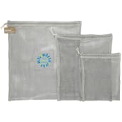 The Recycled Cotton Mesh Cinch Pouch Set was designed to help you stay organized while also being eco-friendly! Perfect for small toiletries, packaged snacks, electronic cables, dirty laundry and more. The large pouch comes with the two smaller pouches inside. The large pouch measures 17" H X 15" W, the medium measures 14" H X 12" W, and the small measures 8" H X 10" W. Through a partnership with 1% For The Planet, one percent of sales of all EcoSmart® products are donated to environmental nonprofits.