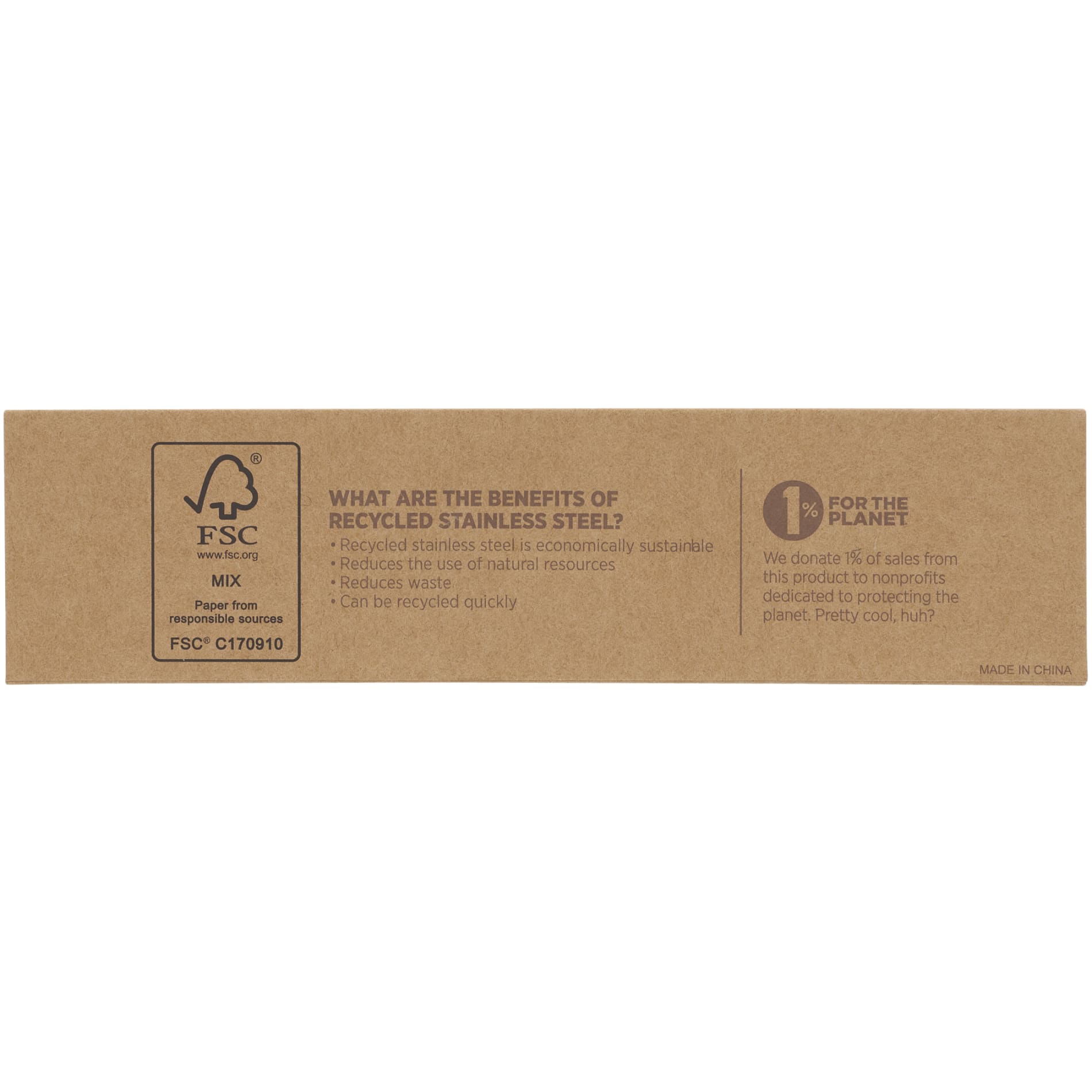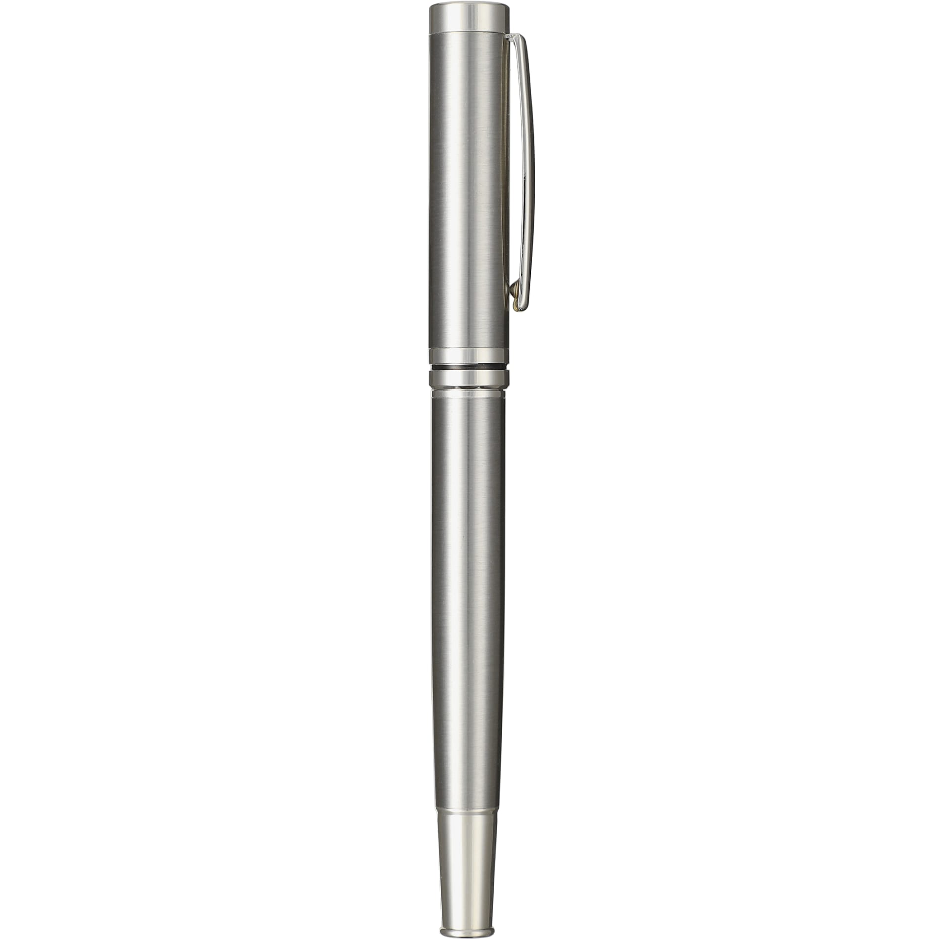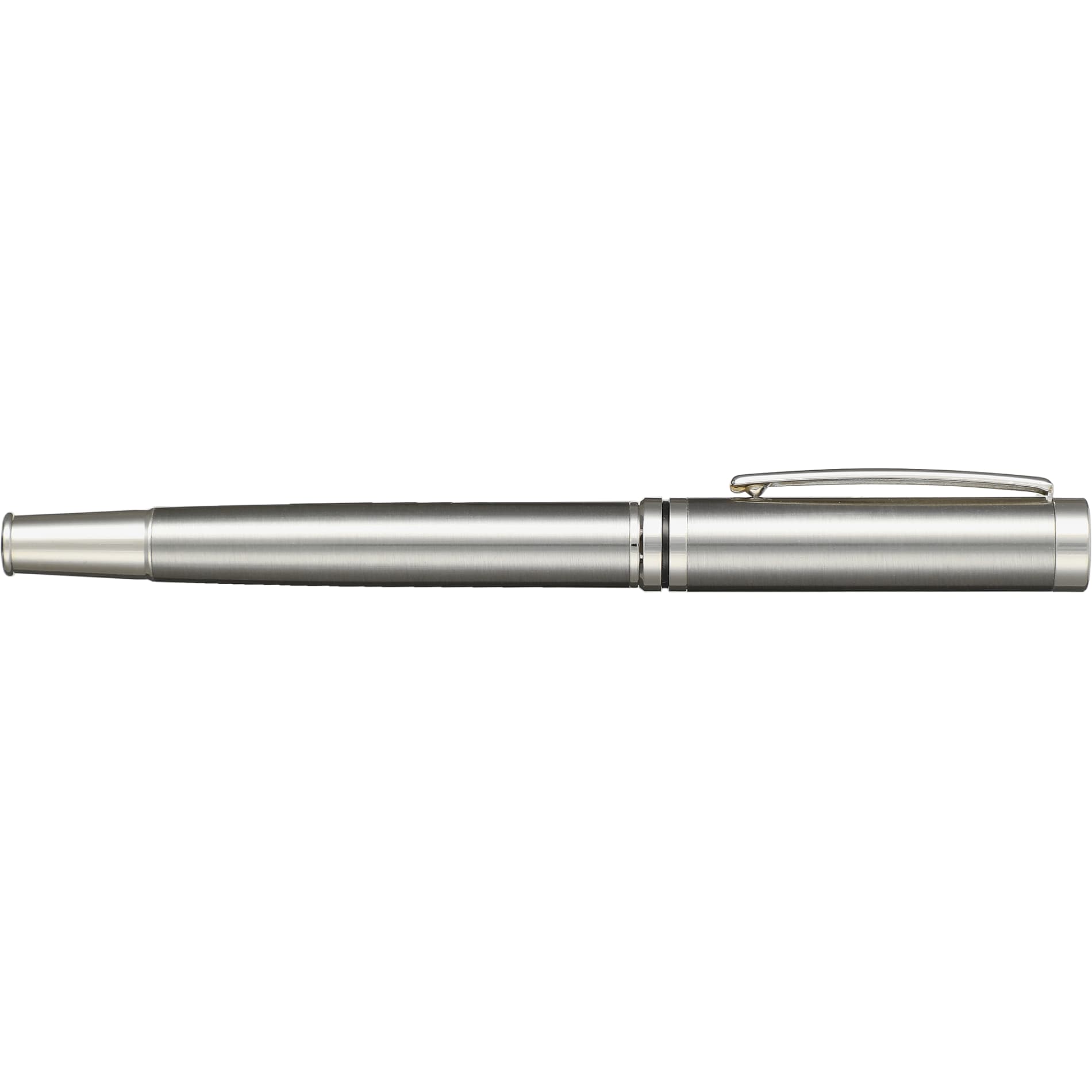 The Recycled Stainless Steel Rollerball Pen features a recycled stainless steel barrel with shiny chrome accents and 0.7mm tip. Smooth black ink with 400m of writing length and cap off design. Through a partnership with 1% For The Planet, one percent of sales of all EcoSmart® products are donated to environmental nonprofits.