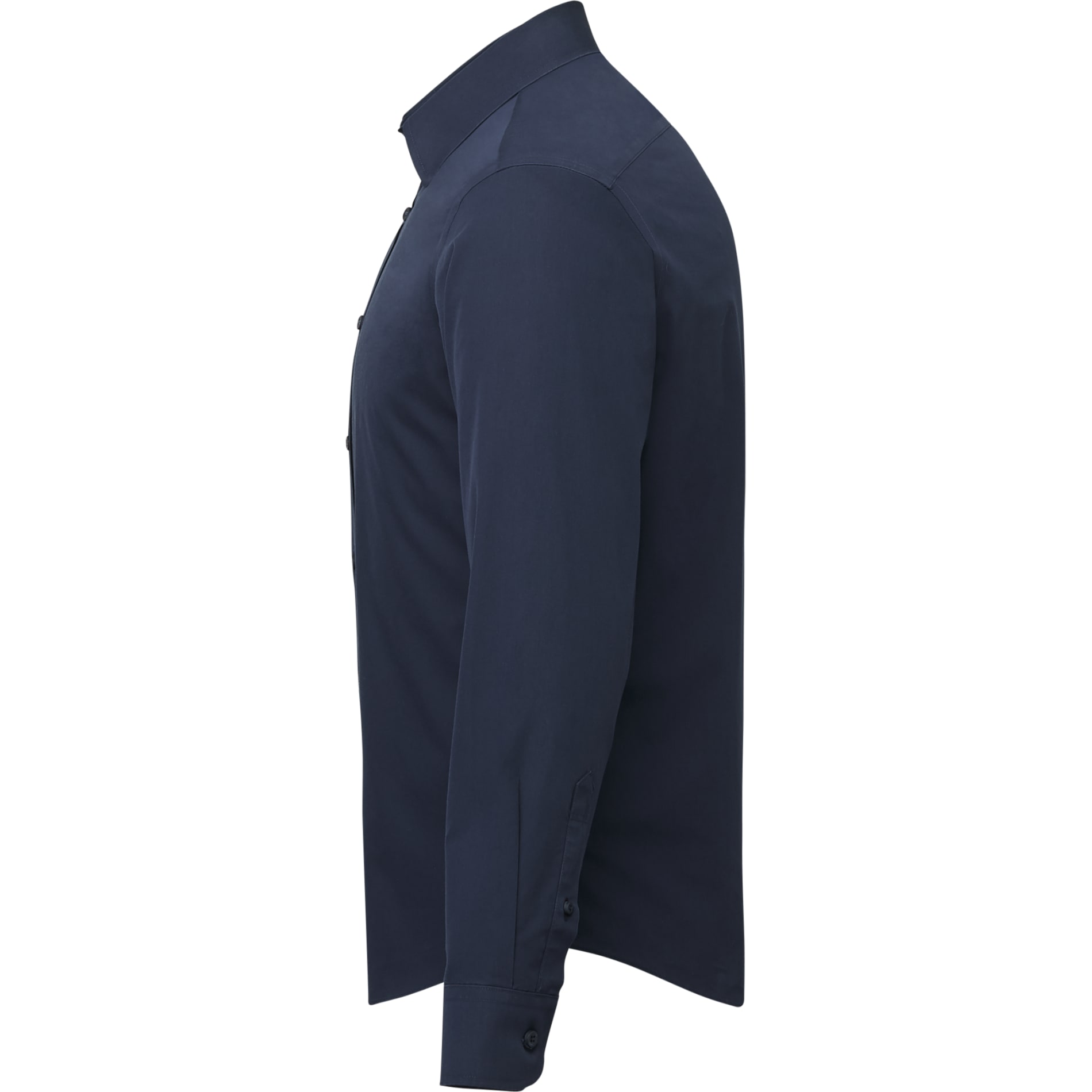 Crisp, clean, and cut for the perfect length, this navy blue shirt stands out from the rest. It's woven from simply gorgeous cotton poplin that's thin enough to wear in sweltering heat, yet durable enough to get you comfortably through the winter months. Plus it's now wrinkle free so you can toss your iron for good!