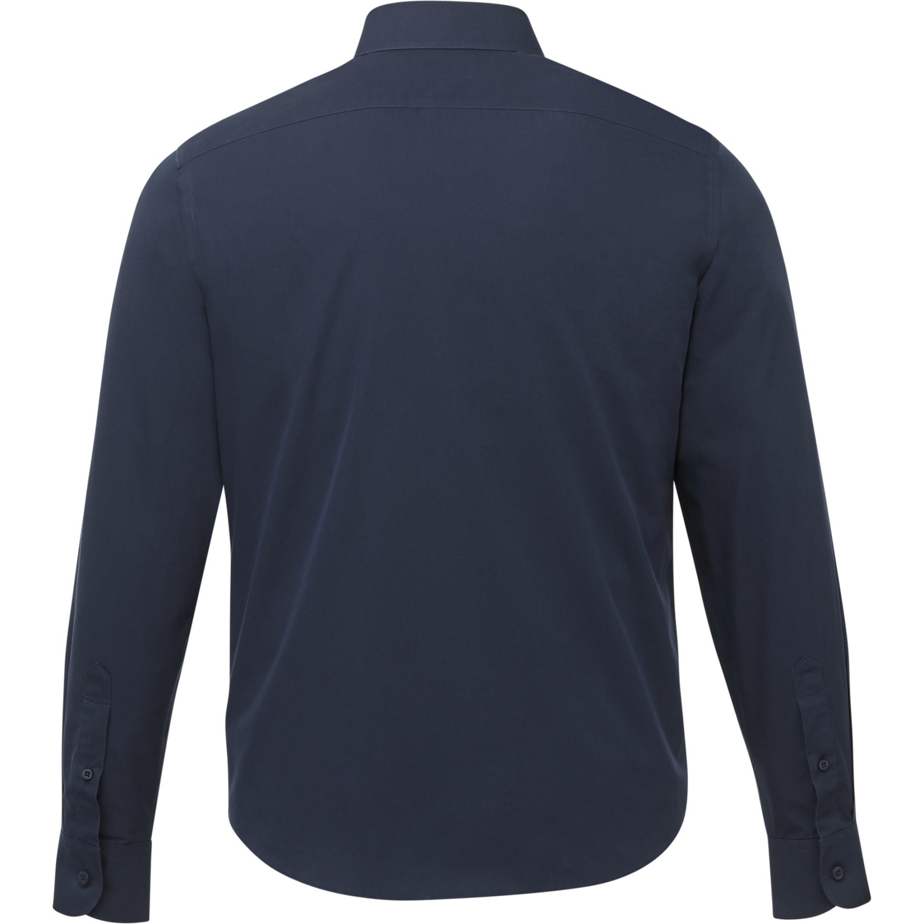 Crisp, clean, and cut for the perfect length, this navy blue shirt stands out from the rest. It's woven from simply gorgeous cotton poplin that's thin enough to wear in sweltering heat, yet durable enough to get you comfortably through the winter months. Plus it's now wrinkle free so you can toss your iron for good!