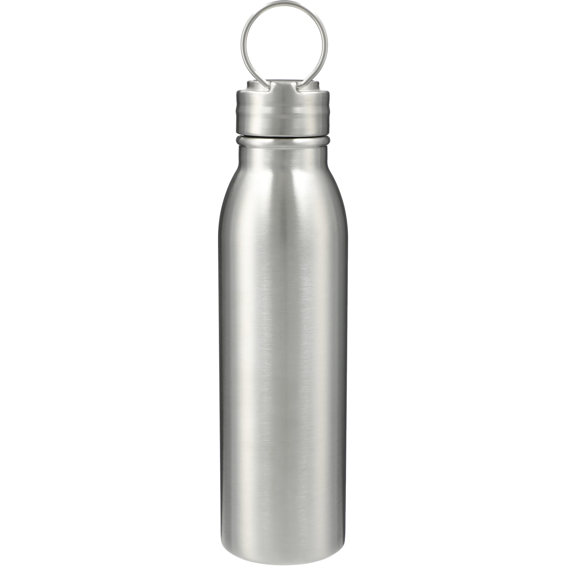 The Vida 24oz Stainless Sports Bottle features single-wall construction and a stainless steel screw-on lid with durable metal handling loop. Hand wash only and follow any included care guidelines.