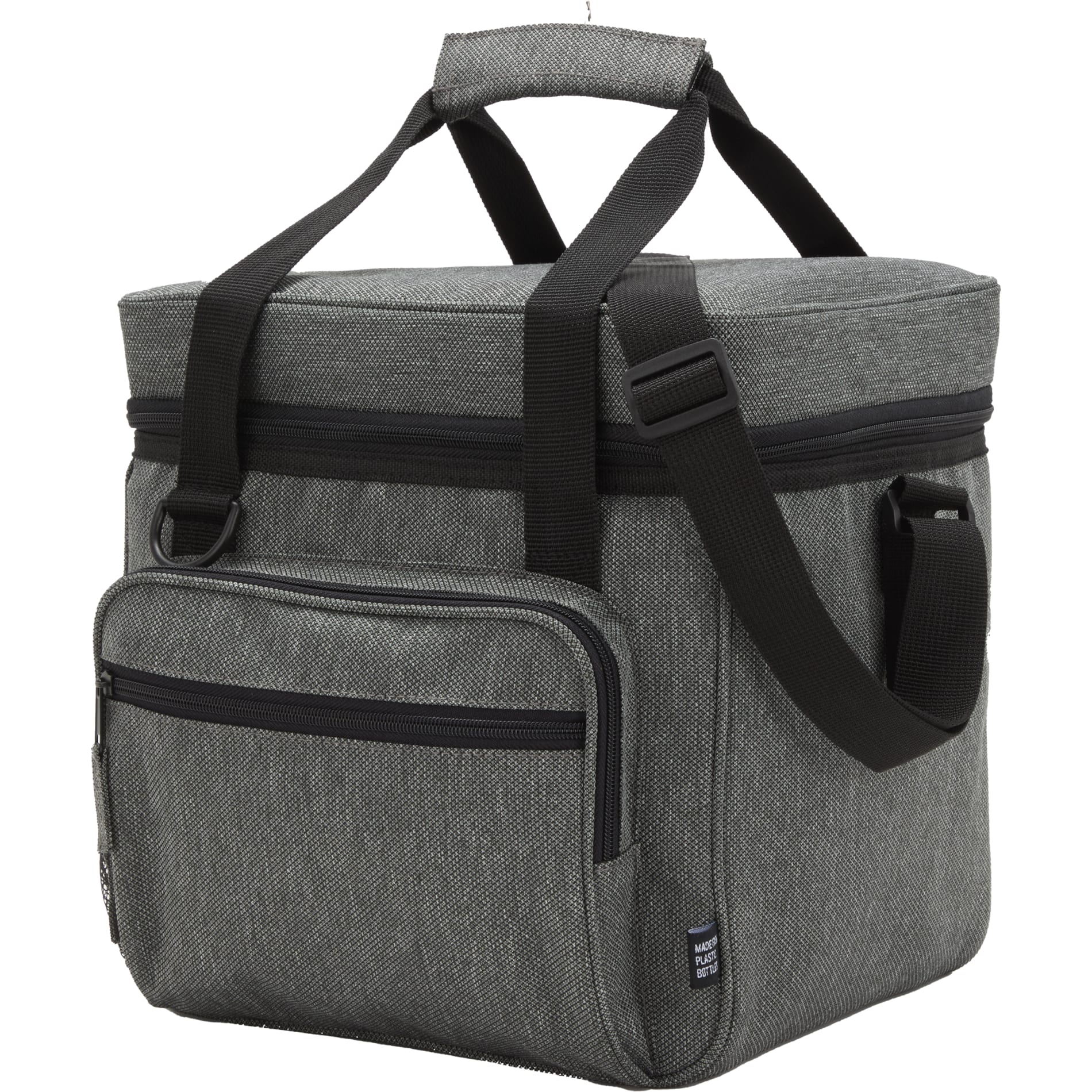 The Vila Recycled 24 Can Event Cooler is a great sustainable option to keep food and drinks chilled at any event! Featuring a large zippered main compartment for easy access and effortless cleaning. Equipped with two zippered front pockets for extra storage and quick access. This cooler also has an adjustable, padded cross-body strap and study carry handles with a padded grip. Crafted from 600D rPET.