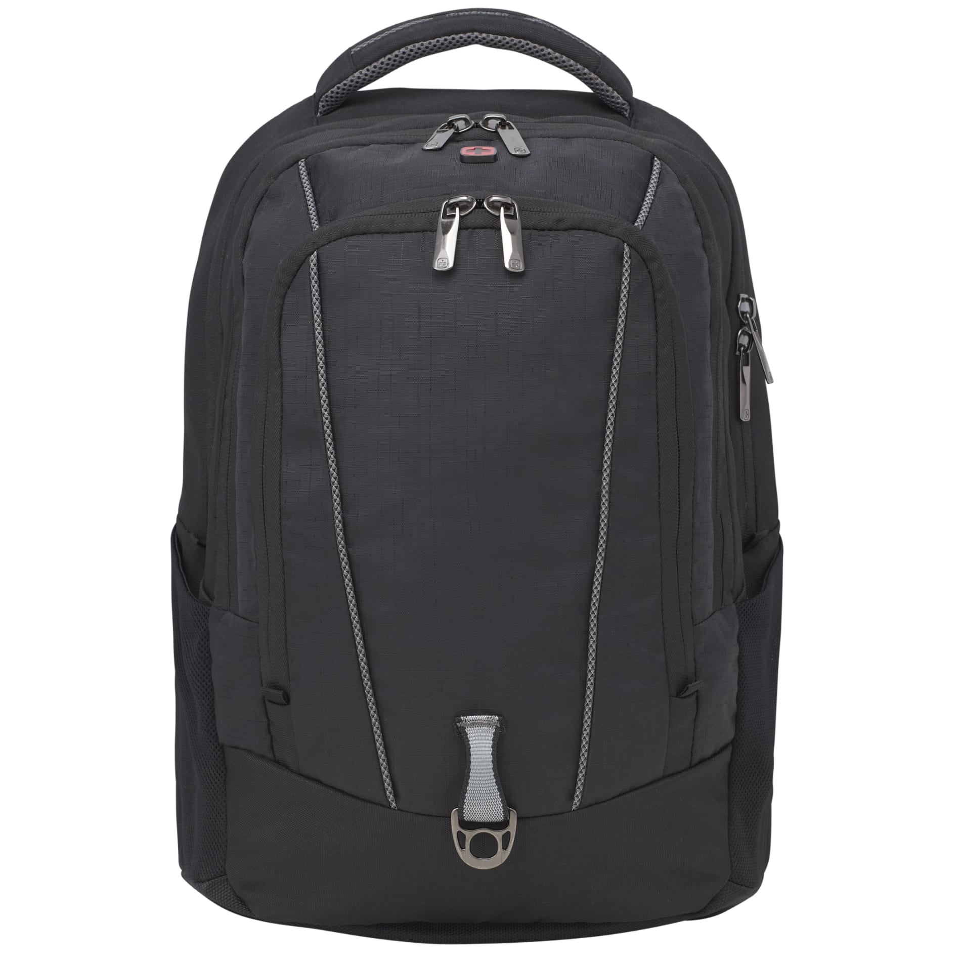 The Wenger Origins Recycled 15” Computer Backpack is made from eco-friendly RPET. The open main compartment features a 15” computer sleeve, plus plenty of room for your belongings. The bag also features an organizational front pocket with key fob, an additional zippered pocket and a mesh foam pocket. The front panel offers a custom d-ring for hanging carabiners. This bag features Wenger® Airflow moisture-wicking mesh, a supportive back board for computer protection and a back webbing trolley sleeve.