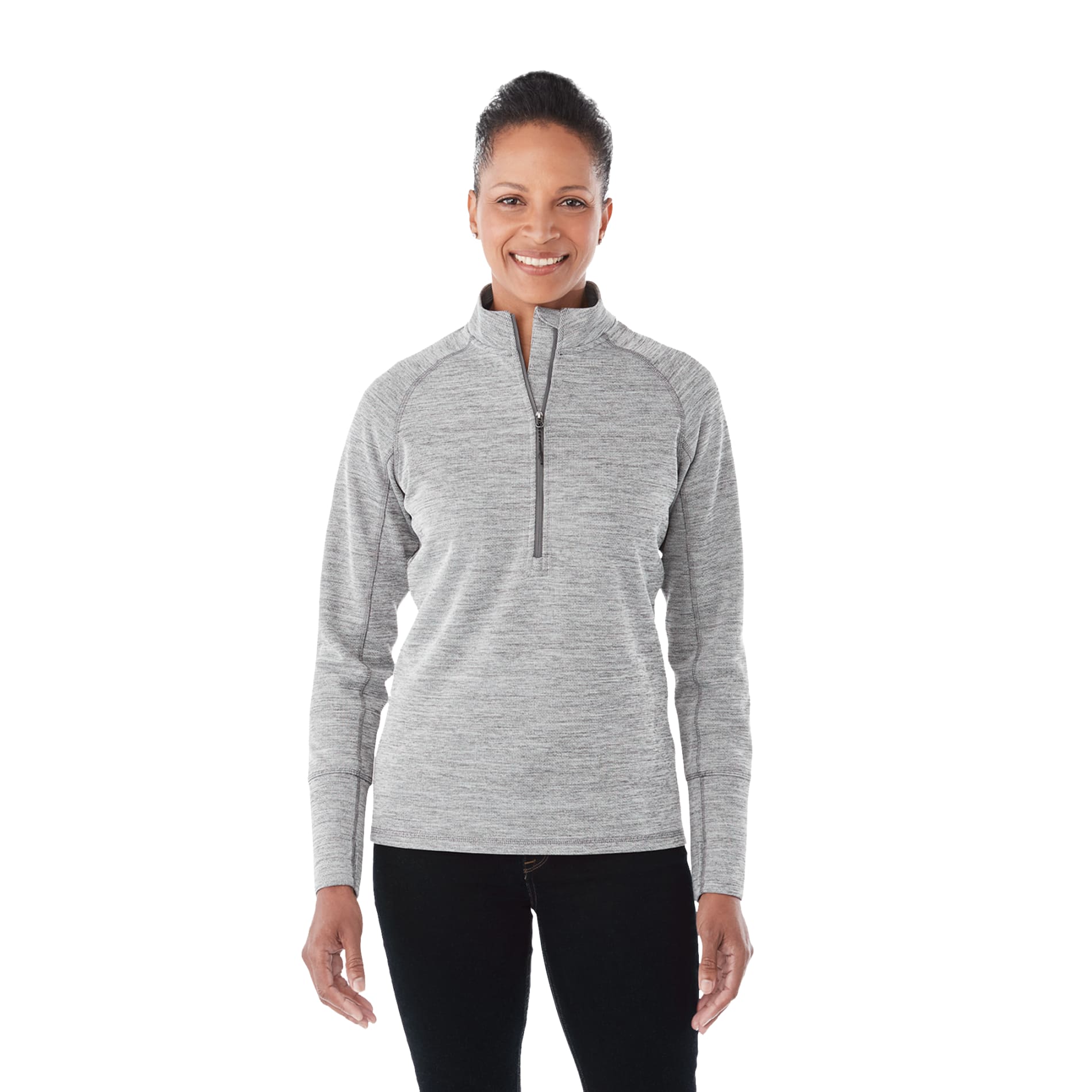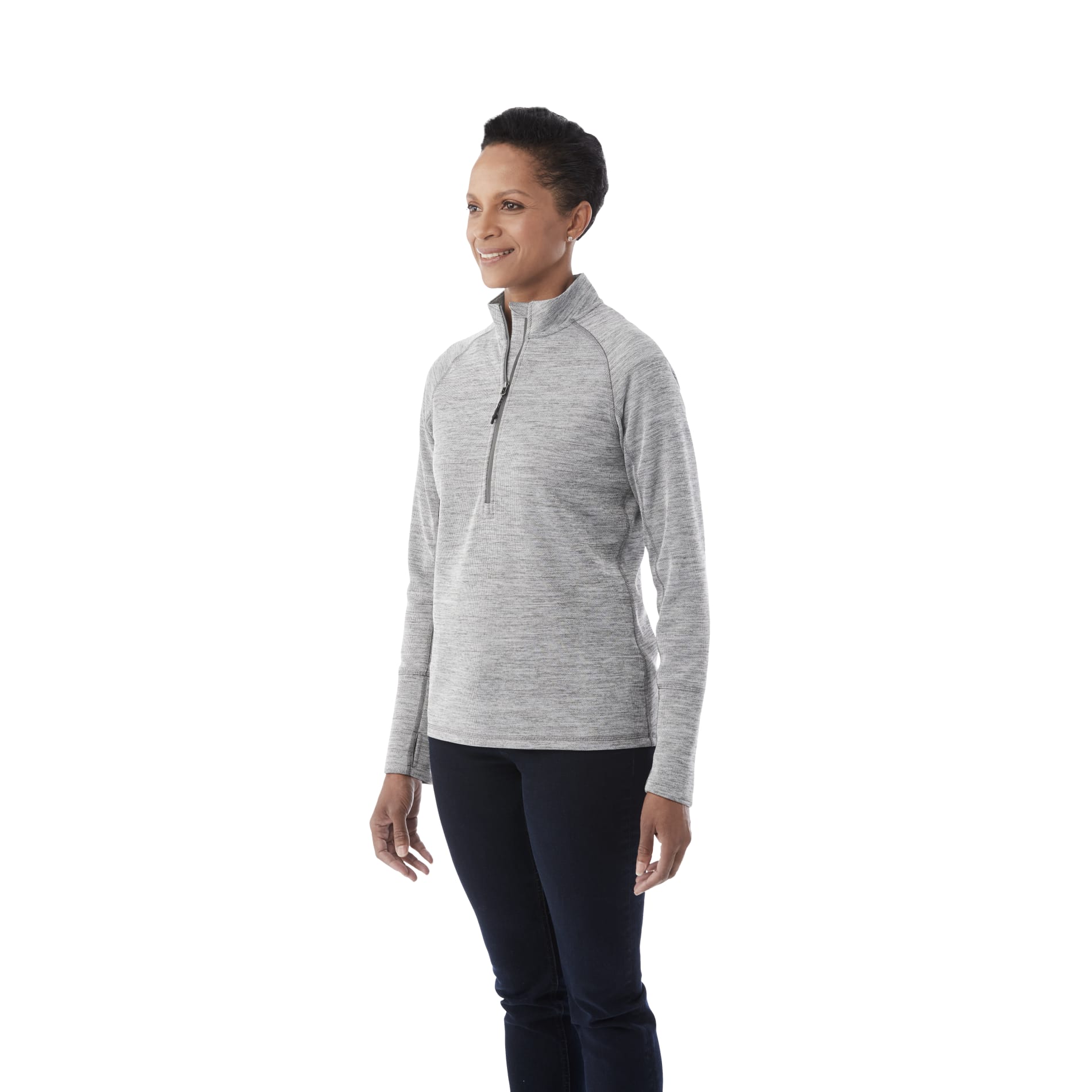 The Women's Crane Knit Half Zip delivers comfort, versatility and technical performance. The Crane features on-trend heathered colors and a dropped back hem for retail style. The moisture-wicking fabric provides all-day comfort, and added features like thumb exits and shaped seams for a flattering fit make this a style you'll want to wear everyday.