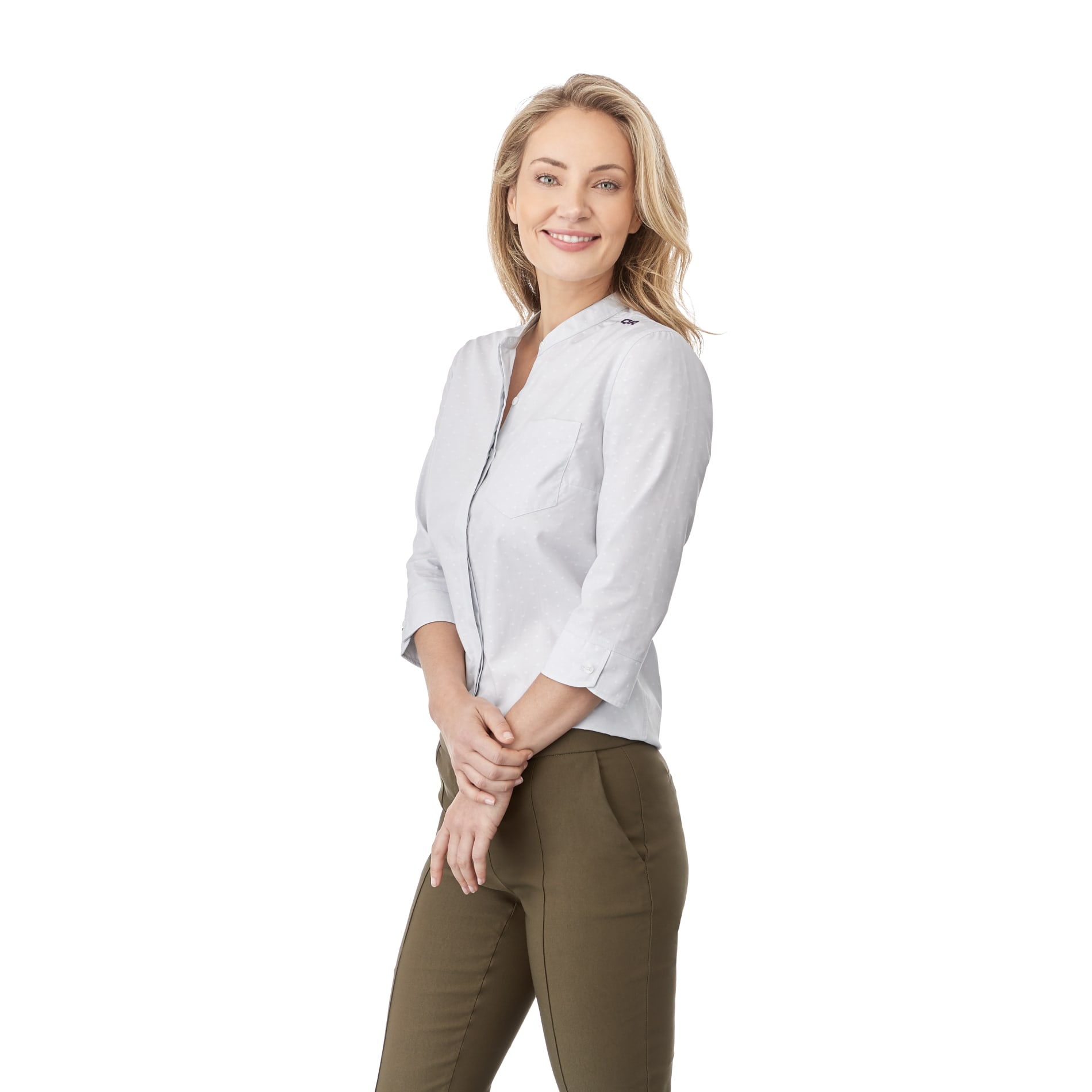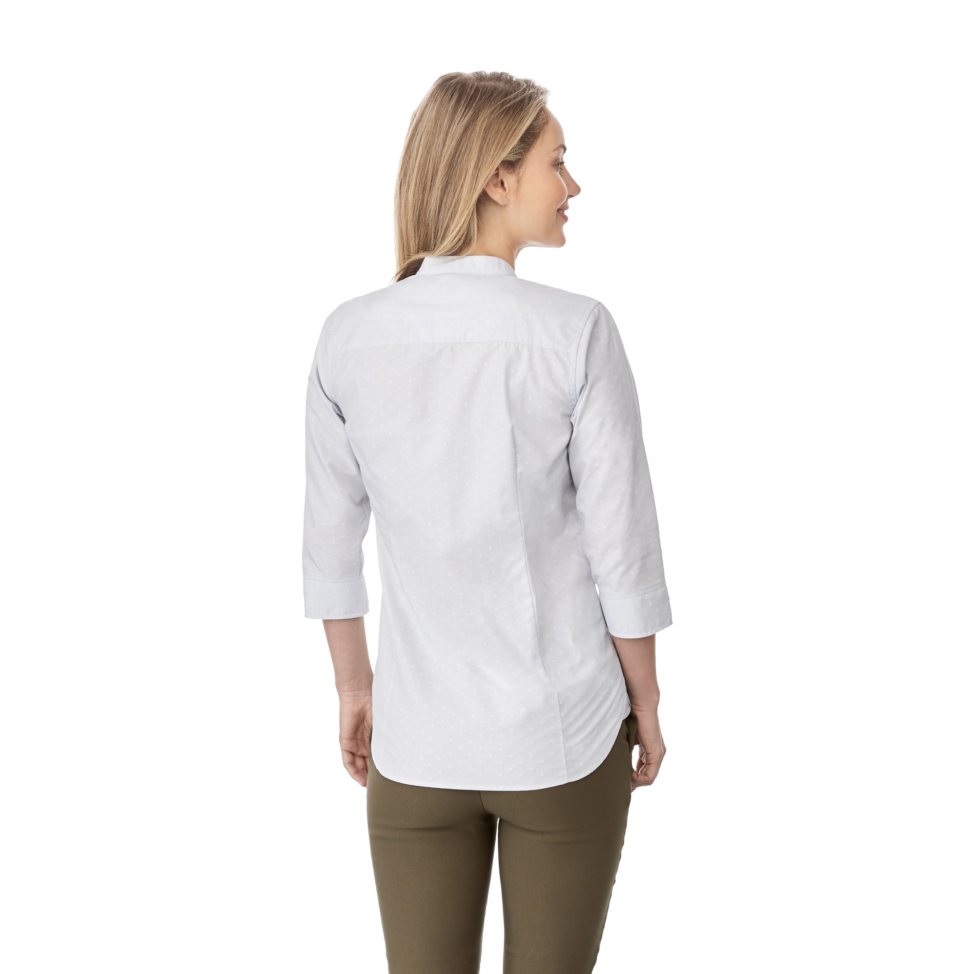 With its distinctive bold-dot pattern, the Huntington can be dressed up or worn as in as a relaxed look that sets it apart from traditional business attire. While the men's style has a hidden button-down collar, the women's has a mandarin collar with three-quarter length sleeves. Both are 100% cotton, wrinkle-resistant and designed for wash-and-wear convenience. An urban professional look, but branded apparel you'll love to wear.