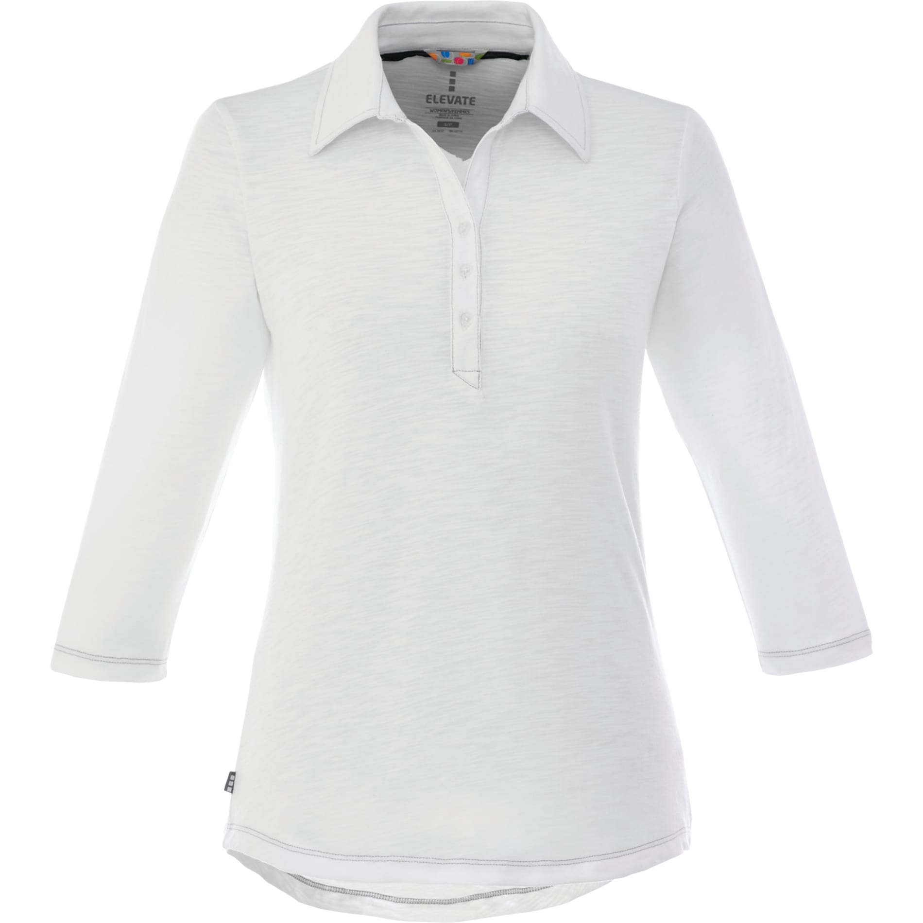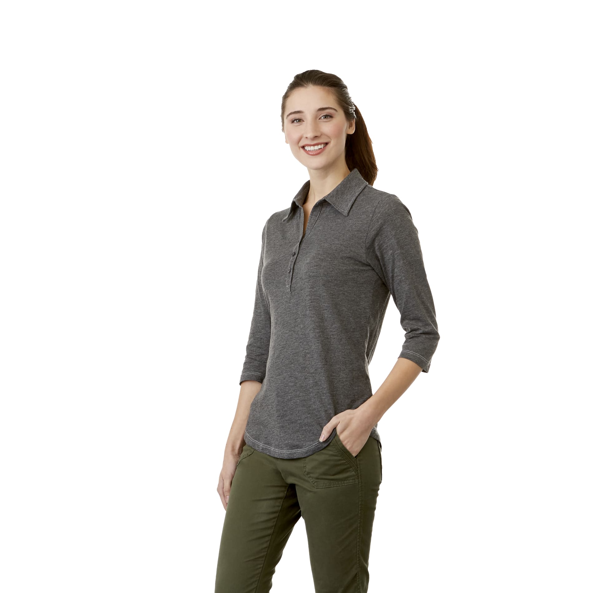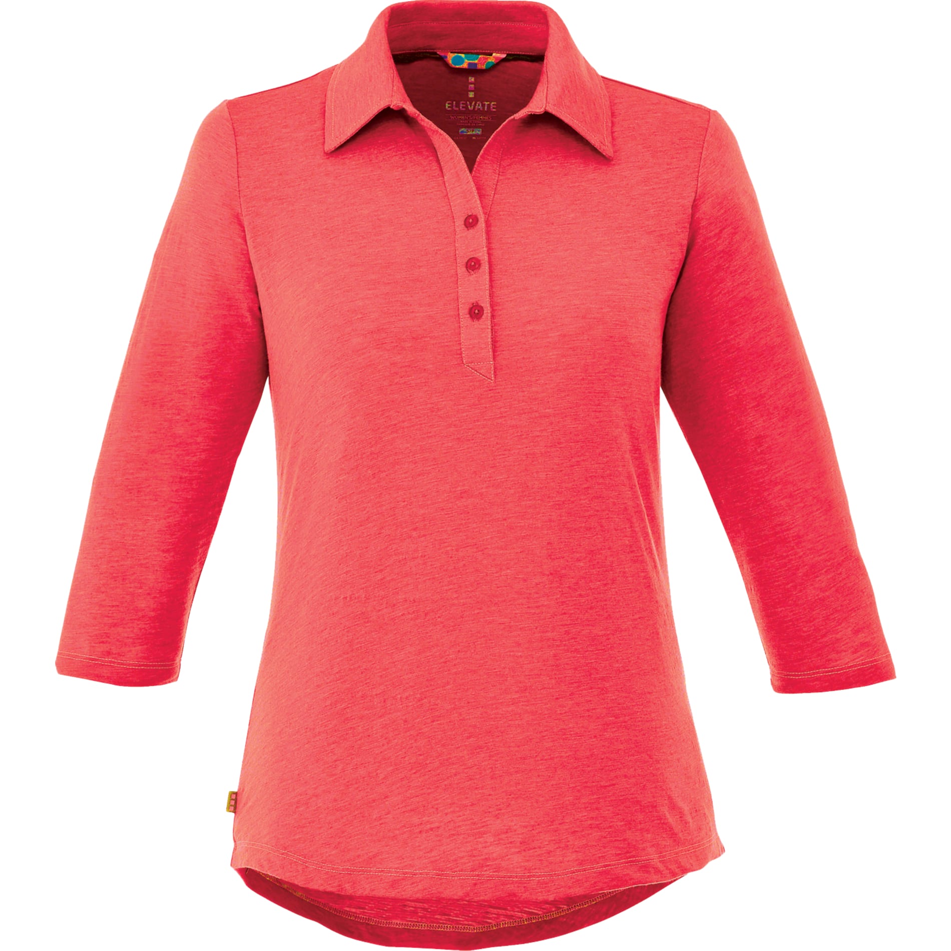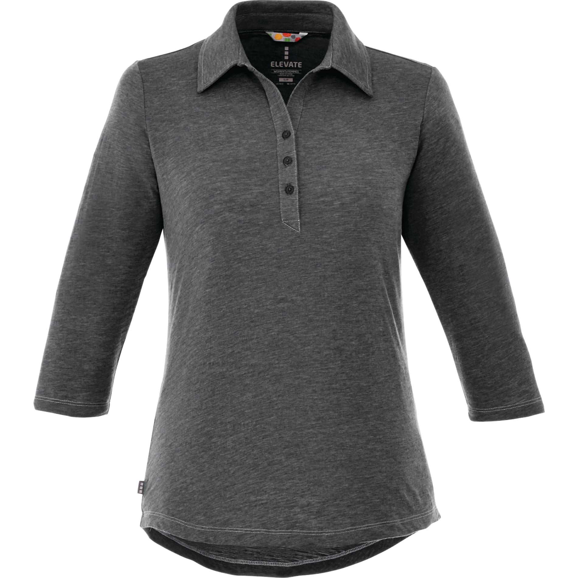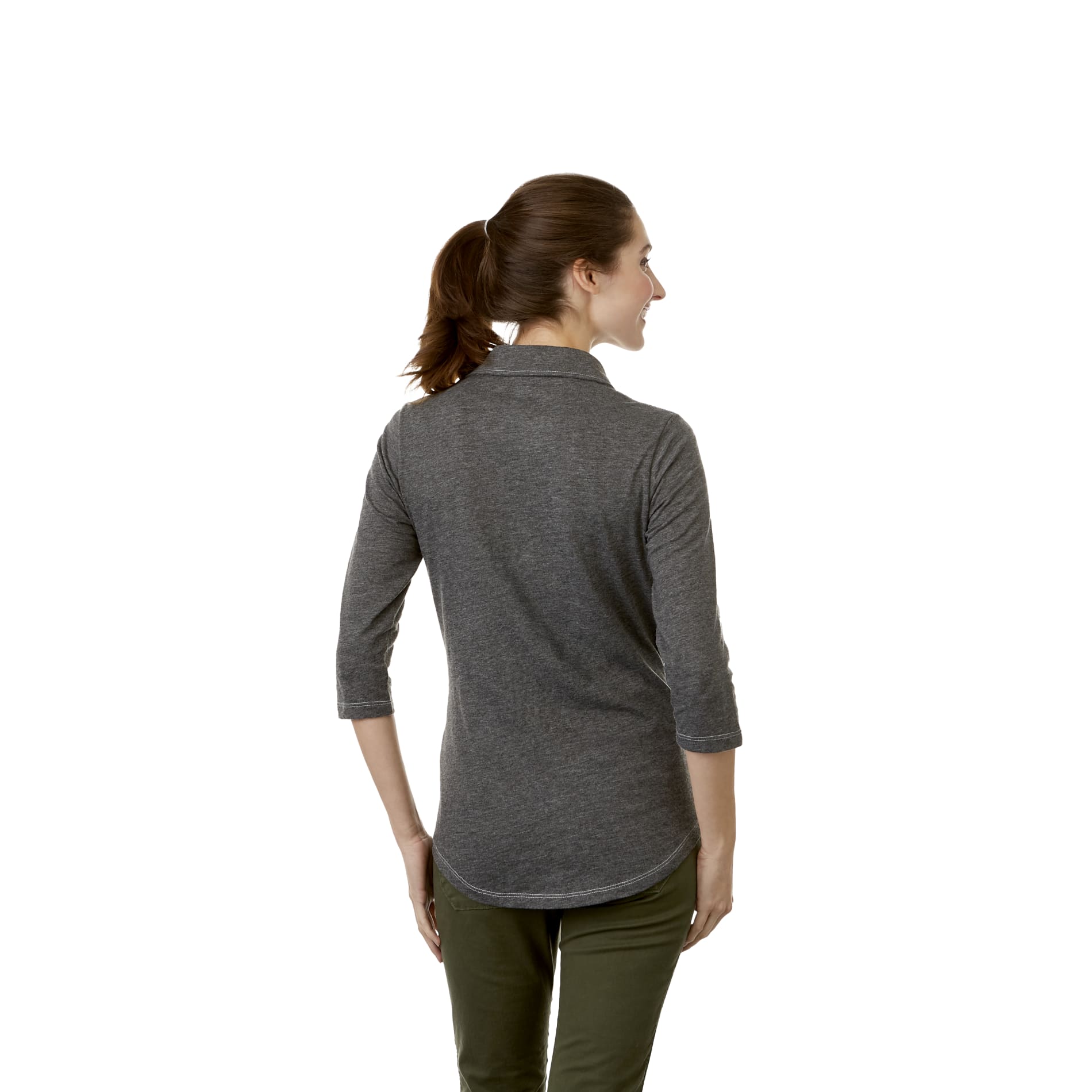 The versatile Tipton Polo has a vintage feel, with contrast stitching against a heather fabric at the collar, placket and shoulder seams. The Tiptons performance, however, is decidedly modern: a breathable polyester-cotton knit with wicking finish, UV protection and snag resistance. The womens version of the Tipton has three-quarter sleeves, a shirttail hem and tapered waist for a flattering fit. Both the mens and womens have a woven Elevate tab on the right hip, hanger loop and heat transfer main label for tagless comfort.